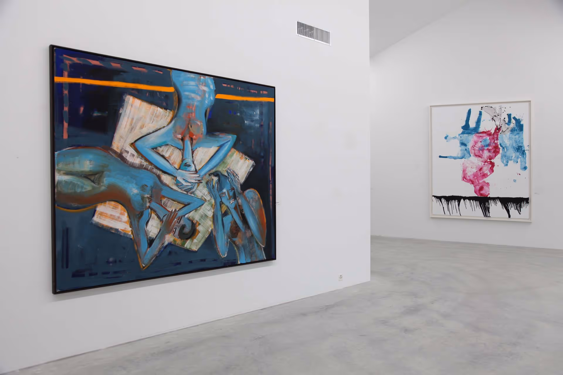 Es war schliesslich die Professionalisierung der Dilettanten schon ab 1982, durch die sich die Neuen Wilden als Gruppenphänomen auflösten. Viele beschäftigten sich nun ernsthaft mit der Malerei als Medium um ihrer selbst willen, am bekanntesten wohl Albert Oehlen. Von Salomé zeigt die Ausstellung in diesem Zusammenhang die Seerosenbilder, in denen eine Figur durch Farbflecken schwimmt und so im wahrsten Sinne des Wortes ins Bild eintaucht bzw. in die Farbe, die gleichzeitig Bild und Materie ist. Wie der späte Baselitz analysiert er damit die Malerei über das Verhältnis von Figur und Grund.